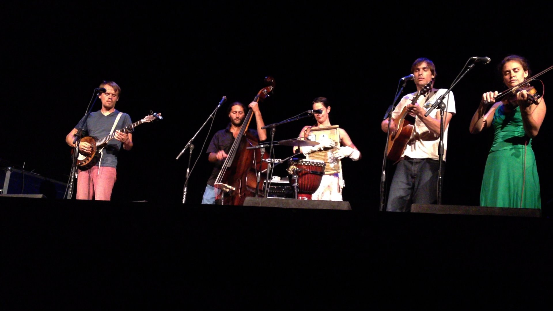 With both Elephant Revival and Ben Sollee headed to California’s High Sierra music festival in July 2012, it made sense that they would both hit up Davis together as side gig on the way. I wasn’t sure what to expect with Elephant Revival, but when I saw the washboard take front and centre, I knew it was going to be some hard core bluegrass. Led by Bonnie Paine, the fierce woman with the washboard, this Colorado quintet blends bluegrass with orignal Irish/Scottish folk influences. A far cry from the cornfields!