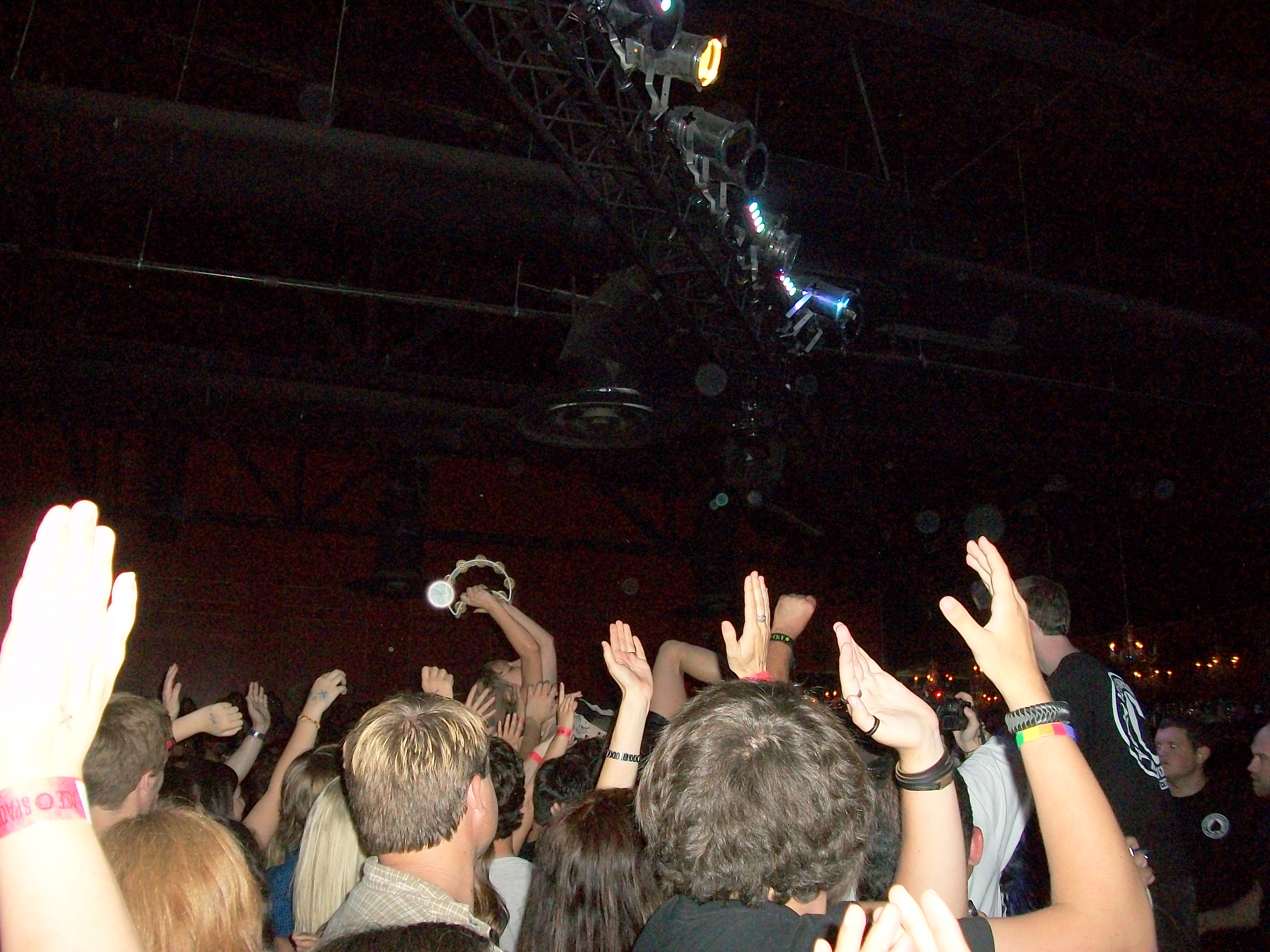 Anna of The Airborne Toxic Event crowdsurfing! BADASS chick.