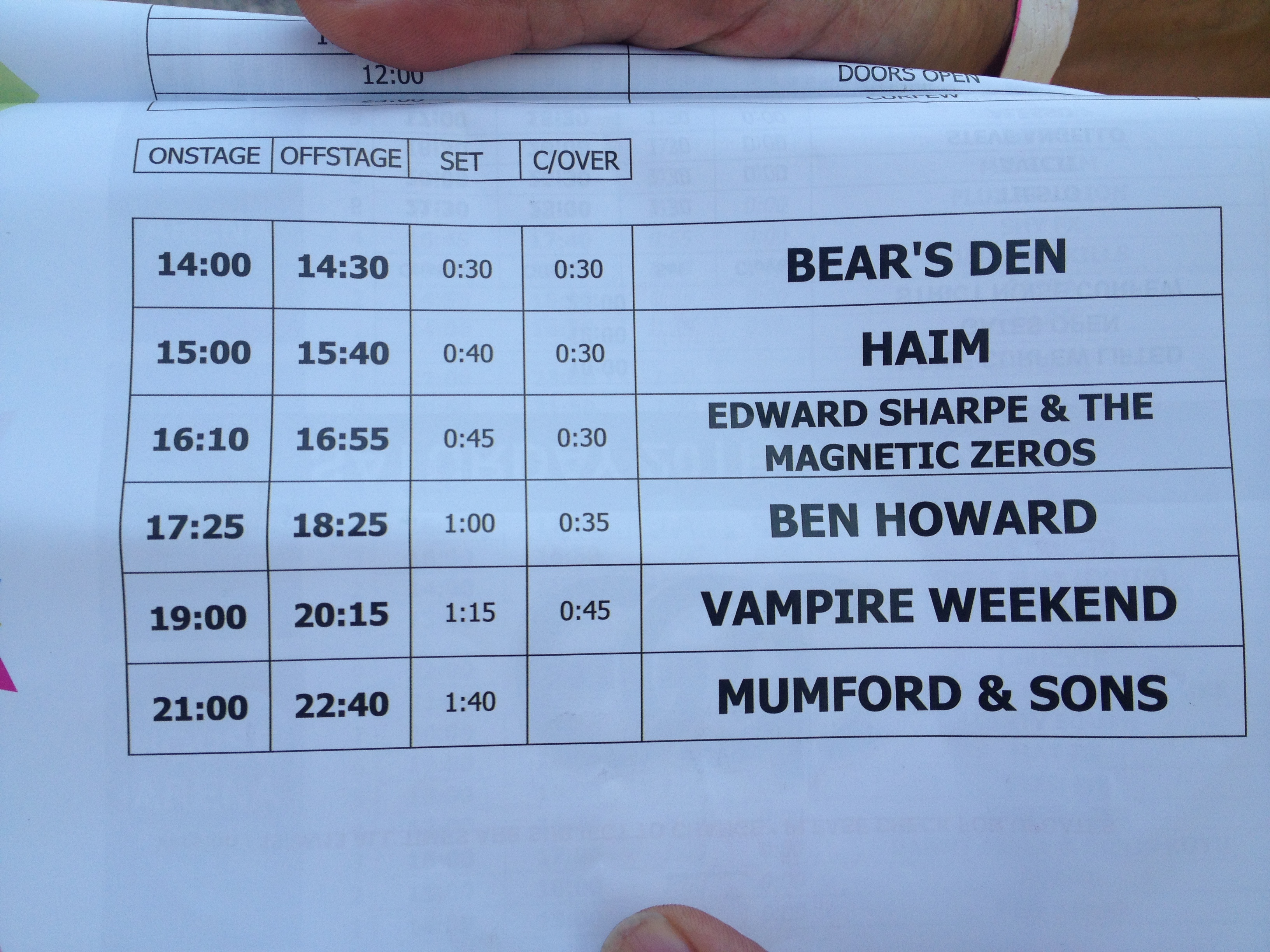 The lineup: Bear’s Den, Haim, Ben Howard, Vampire Weekend, Edward Sharpe & The Magnetic Zeros, Mumford & Sons